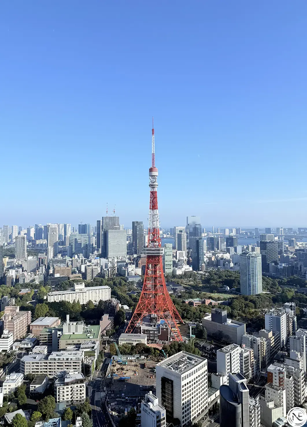 下一站我們來到六本木,造訪最近熱門的景點【麻布台之丘 森JP Tower】。這裡可以近距離欣賞東京鐵塔,更是最新的打卡熱點。想用較優惠的方式入場,推薦先搭電梯至34樓的 Hills House Sky Room,只需點一杯飲品(最低約800日圓),再支付500日圓即可進場。現場視野開闊,白天能拍到清晰的鐵塔景色,黃昏時分還能捕捉夕陽與城市燈光交織的夢幻畫面,室內空間也設計得非常現代,適合邊喝飲品邊欣賞美景。