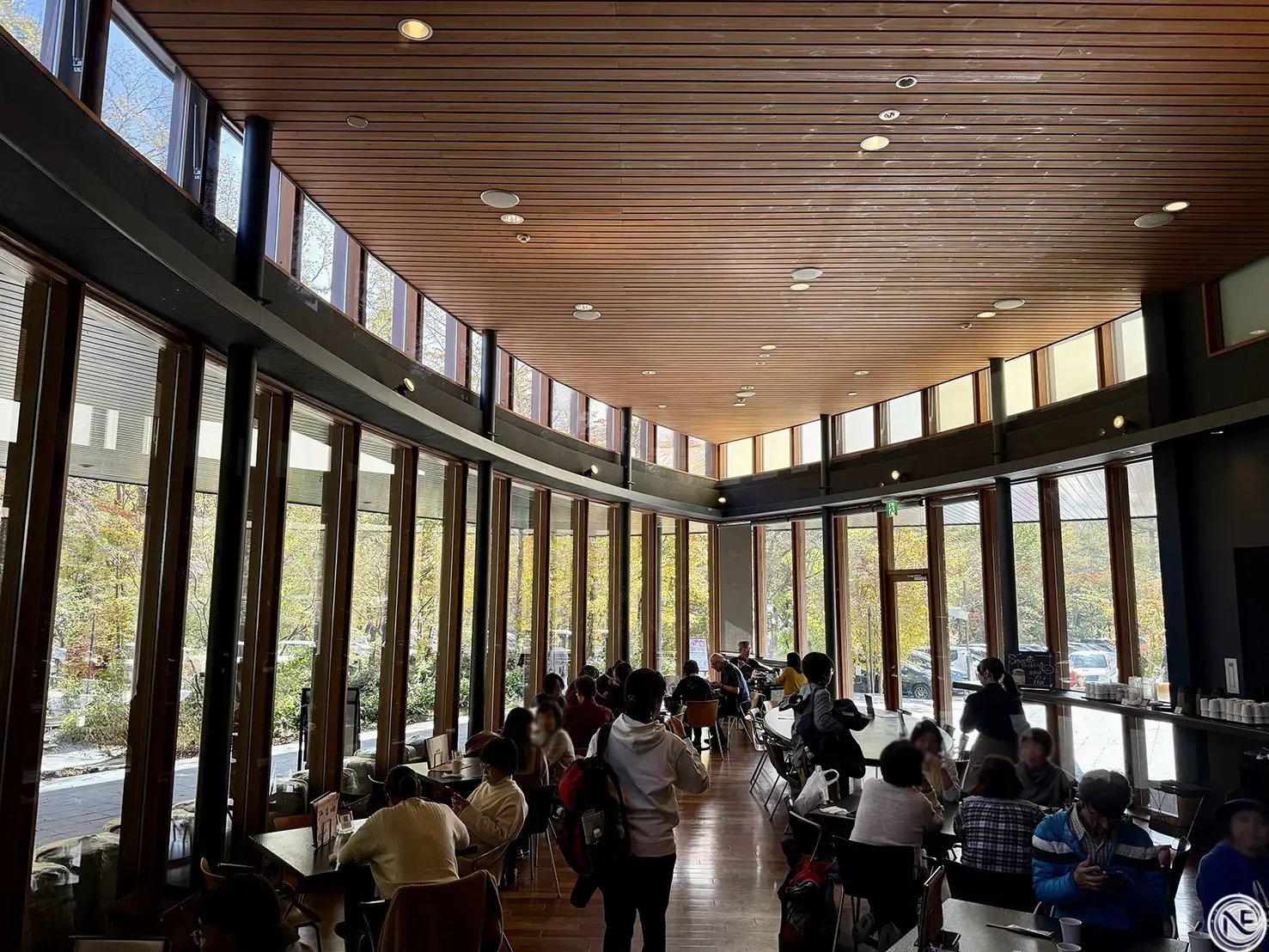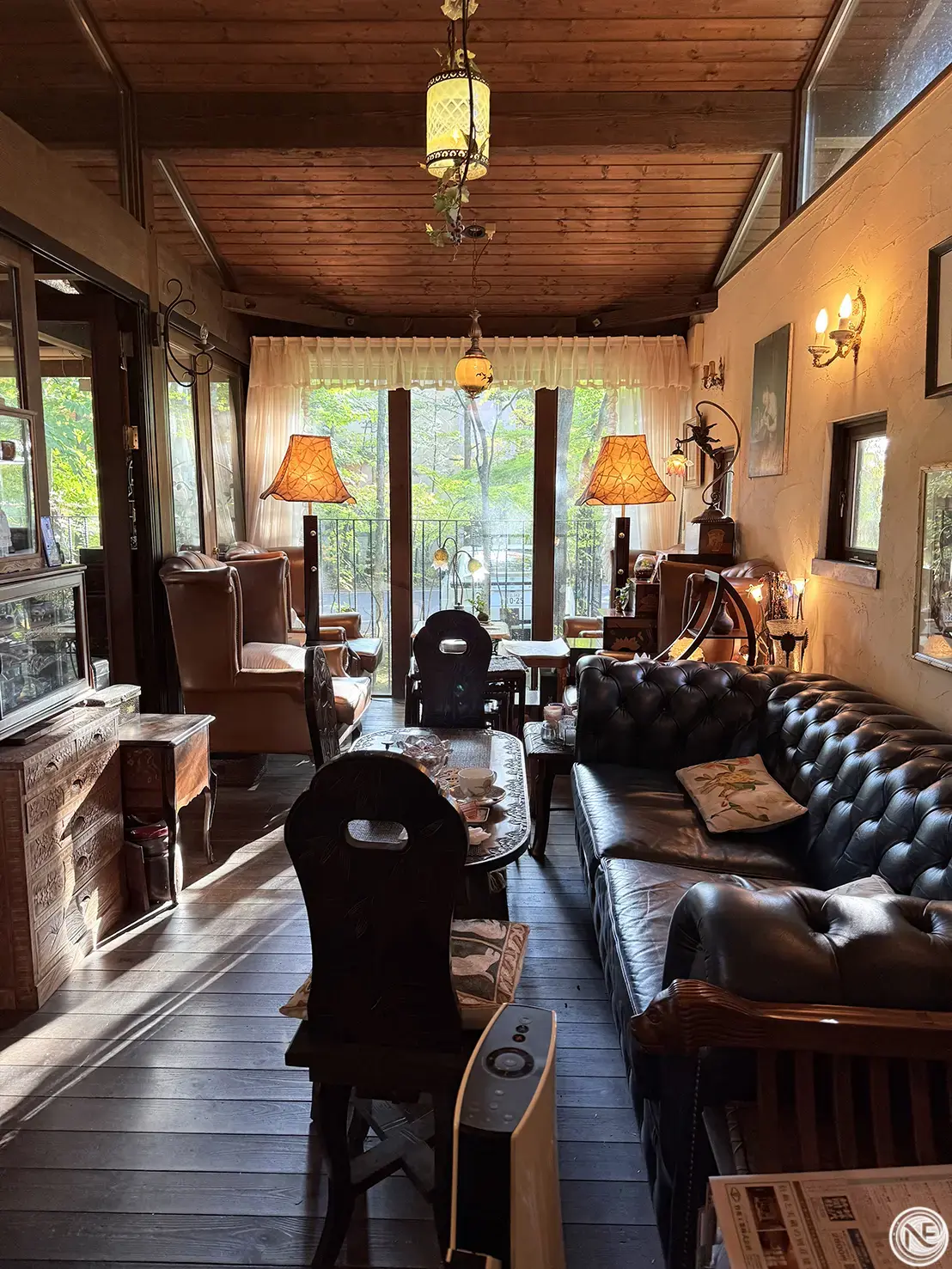 餐廳設計溫馨簡約,大片落地窗引入自然光與綠意,氣氛靜謐放鬆。主打日式定食,唐揚雞、牛肉套餐與蕎麥麵都表現亮眼,無論是視覺還是味覺都讓人滿足,是輕井澤行程中蠻推薦的一站!