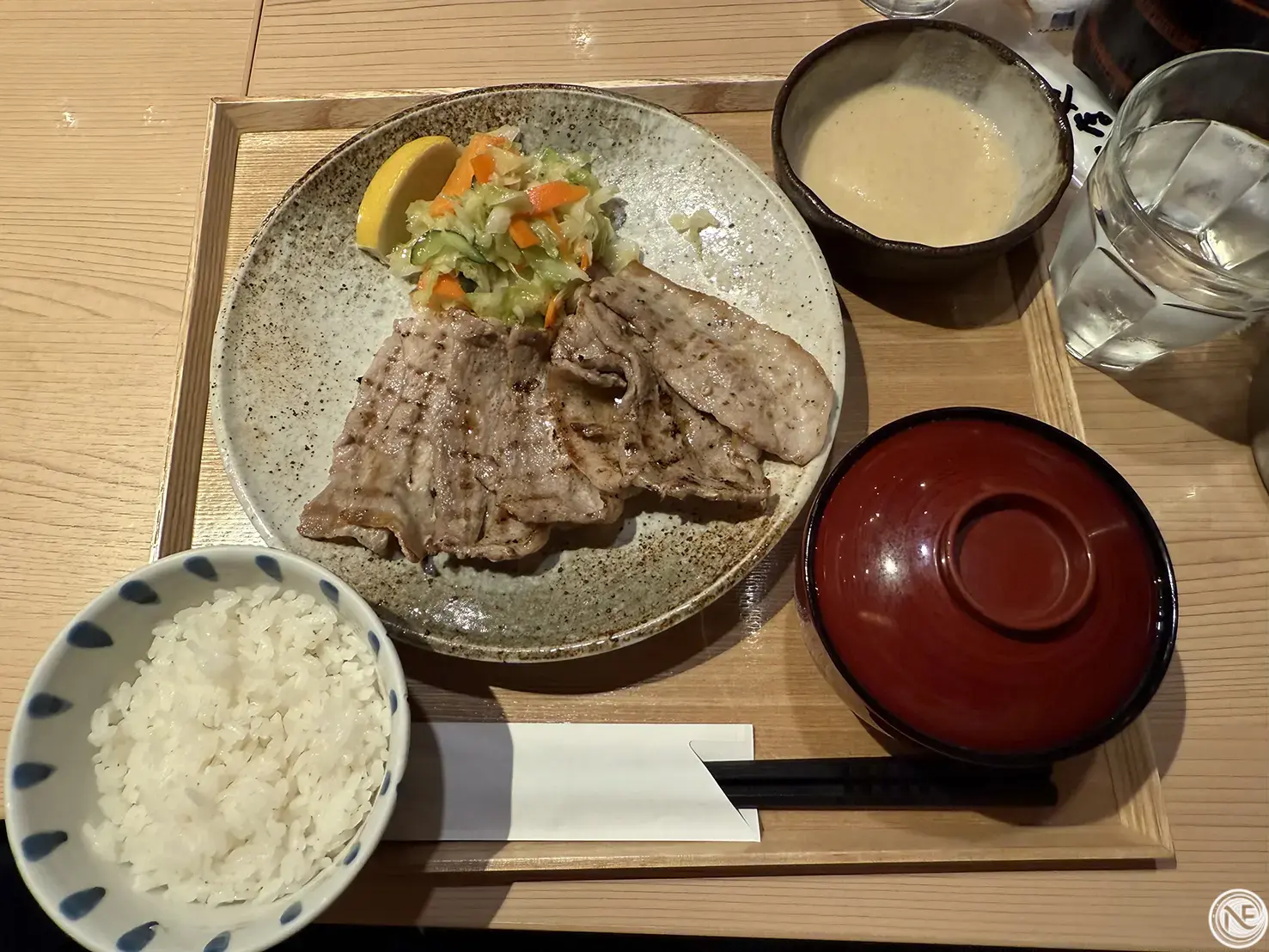 晚餐我們意外發現了【有楽町うまやの楽屋】這間日式定食店,主打牛舌與豬肉定食,肉質鮮嫩、煎得恰到好處,搭配熱呼呼的蒸蛋與味噌湯,整體相當滿足。店內環境溫馨舒適,價格也親民,是一間美味又高CP值的好選擇,非常推薦給想吃日式定食的旅人!