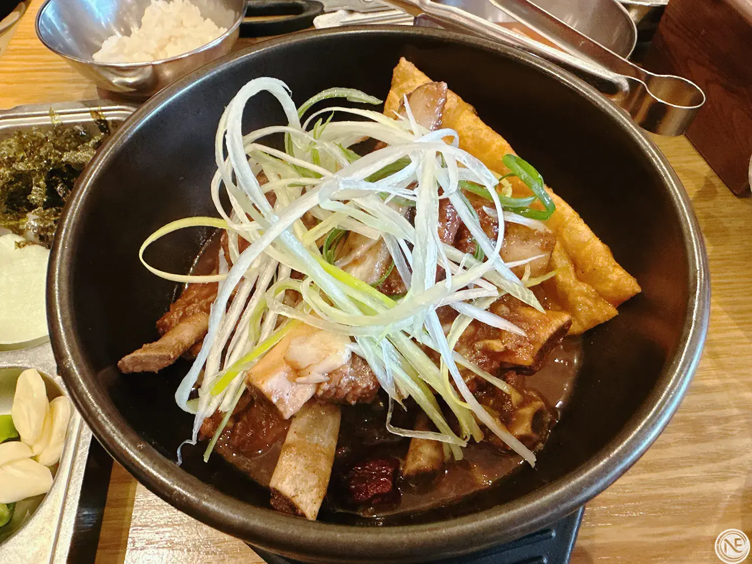 來到大邱,絕對不能錯過超人氣的巨松燉排骨!排骨燉得非常入味、軟嫩到輕輕一咬就能與骨頭分離,令人一試成主顧。店內電視還貼心播放教學影片,教你如何正確搭配配料、享受最佳風味。如果不想排長隊,建議提早在開店前(上午 11 點)就抵達,通常有機會成為第一批入場的客人。
