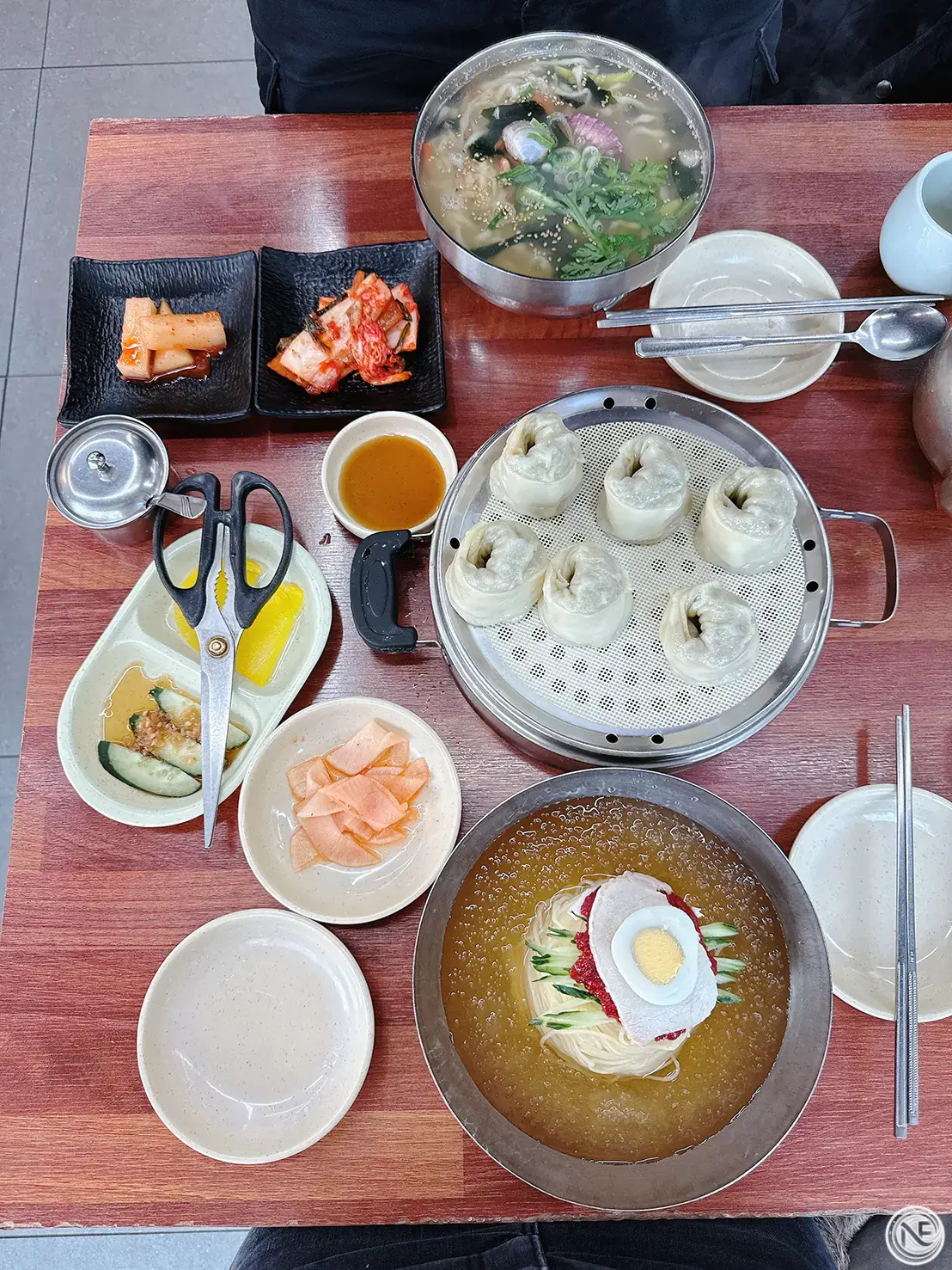 來到釜山絕對不能錯過當地的特色美食——小麥冷麵!這家在地老店相當有名,就算已經過了用餐尖峰時間,店內依然座無虛席,可見人氣之高。他們的冷麵麵條相當有彈性,入口清爽滑順。我們還加點了海鮮刀削麵和韓式餃子,不論是湯頭還是餡料表現都很不錯,整體用餐體驗令人滿意。