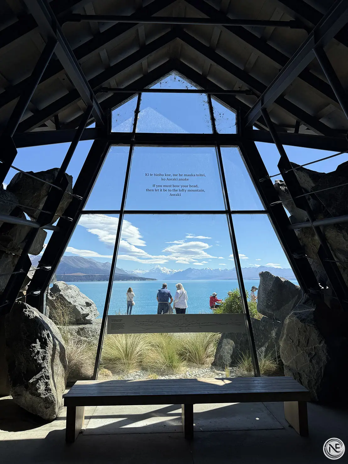 Lake Pukaki 因為是冰河融水所形成,湖水呈現出令人驚嘆的牛奶藍,搭配遠方壯麗的庫克山,美得讓人捨不得離開。坐在湖邊用餐、感受微風,是身心靈都能被療癒的絕佳體驗。一旁還有小型的遊客中心可以參觀,也設有拍攝經典美景的觀景平台。這裡同時也是熱門打卡點之一,現場還有這句令人印象深刻的標語: