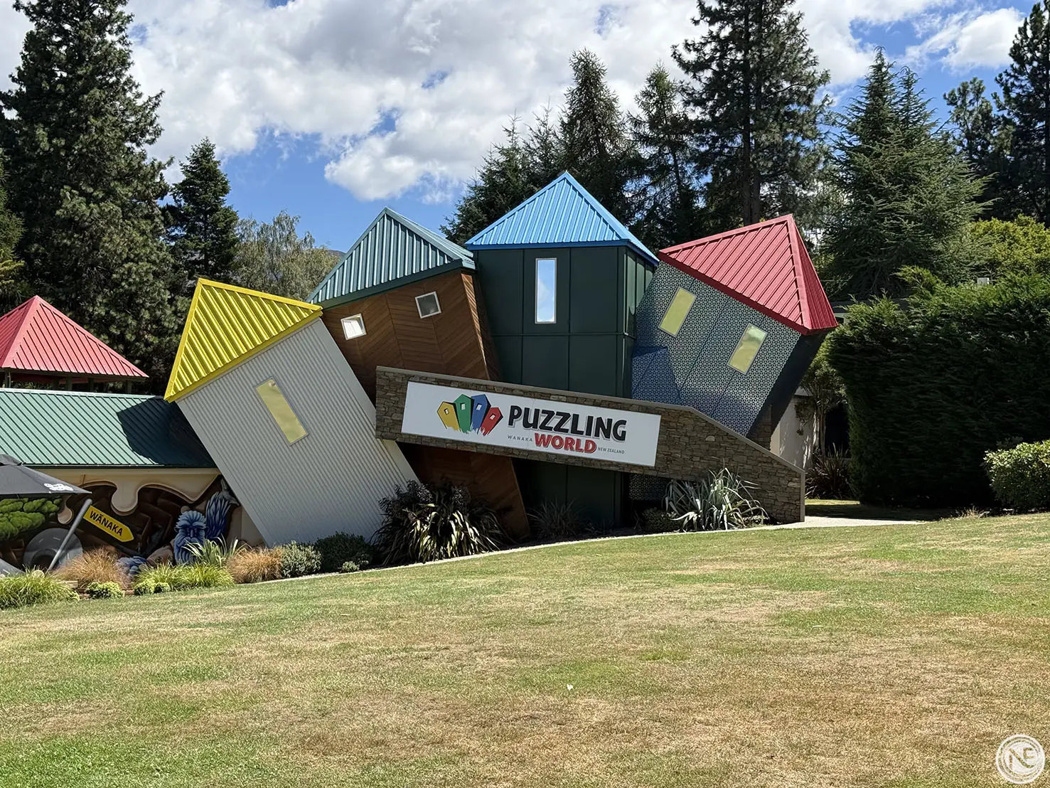 離開薰衣草農場後,我們驅車前往今日要入住的 Archway Motels & Chalets。途中經過知名的拍照地標 Puzzling World,這裡以傾斜屋與幻覺裝置聞名。我們沒有安排入內參觀,但還是下車在外頭拍了幾張趣味感十足的外觀照片,算是打卡到此一遊的小插曲。