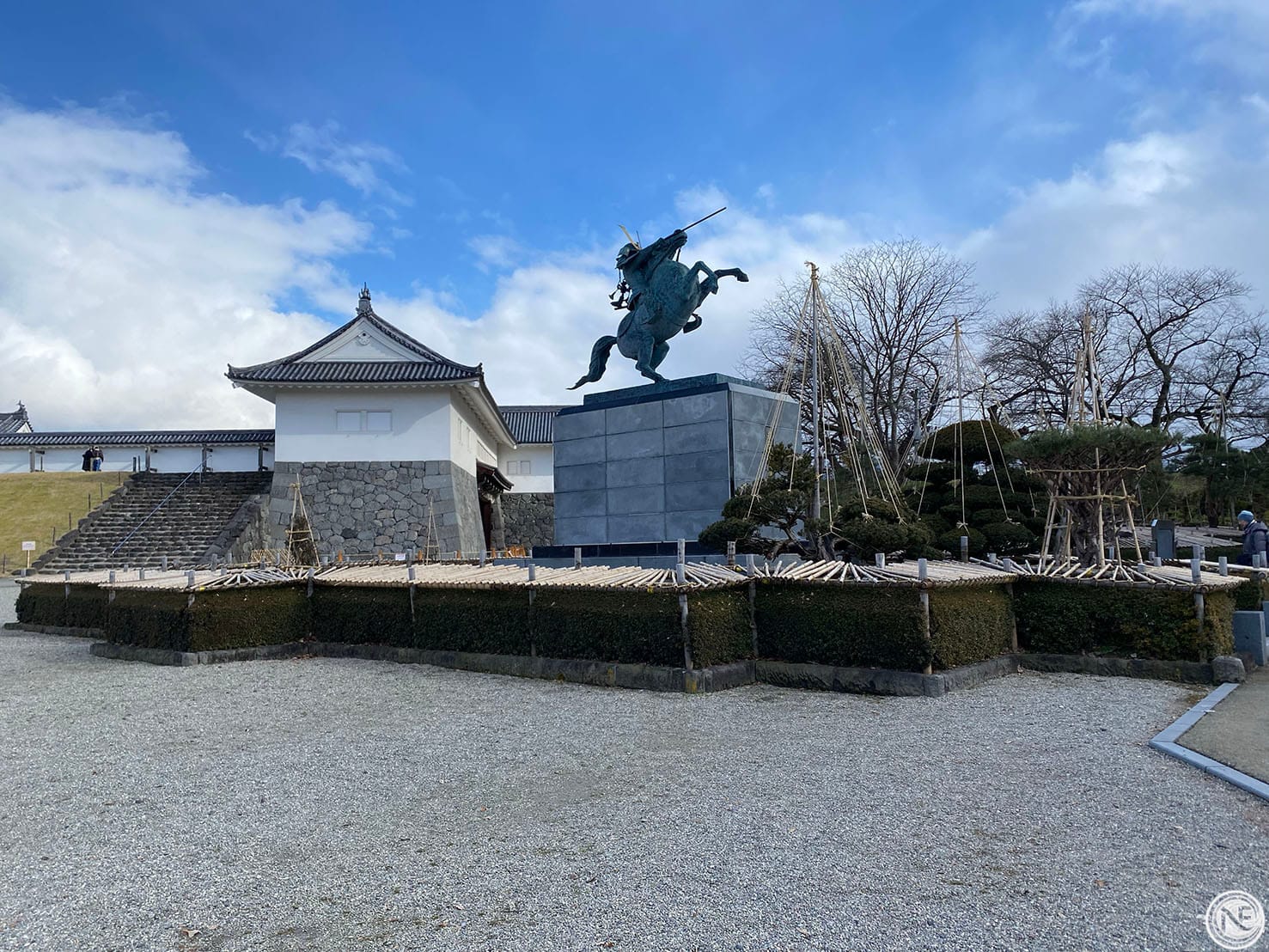 接著我們來到另一處代表性景點 —— 霞城公園,這裡正是山形城遺址所在。園區內仍保留完整的護城河、石垣與古城門遺跡。每到春季,園內約有 1500 株櫻花樹齊放,吸引大量遊客前來賞櫻,是山形地區最著名的賞花景點之一。但我們在冬季造訪,園區景致較為蕭瑟,比較沒什麼東西可以看😅 園內還設有山形市立博物館、美術館等文化設施,是兼具自然與歷史的散步好去處。